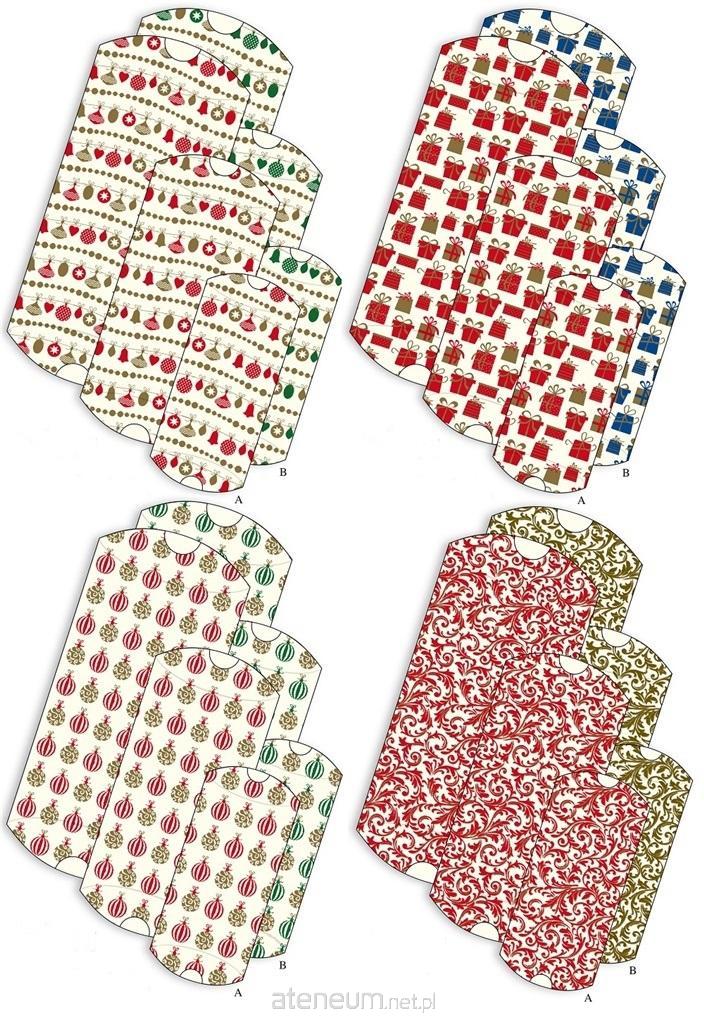 Zestaw świątecznych pudełek prezentowych w trzech różnych rozmiarach: 8x12 cm, 10x17 cm, 13x21 cm. Gramatura papieru 270gr/m2. Mix wzorów, wzór wysyłany losowo.