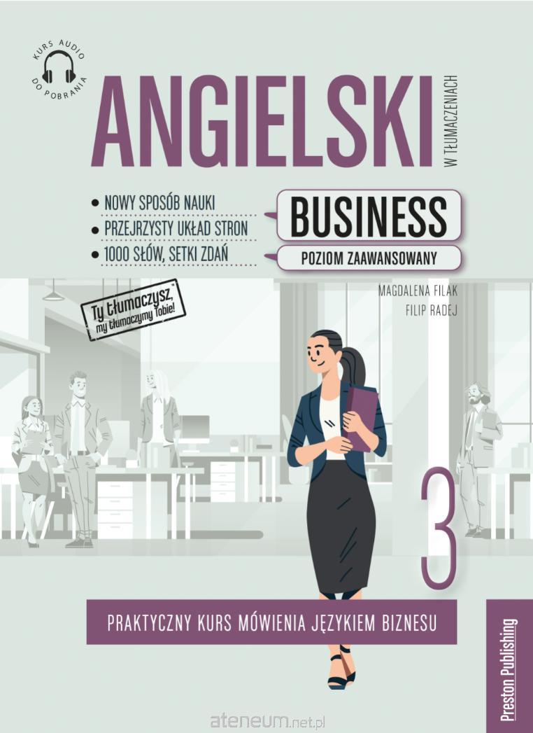 Nowa formuła nauki i innowacyjny sposób ćwiczenia języka. Ostatnia z serii trzech książek do nauki słownictwa i ćwiczenia mówienia w języku angielskim w zakresie biznesu. Poziom zaawansowany (C1-C2). Każdy rozdział to jeden temat związany z biznesem zawierający słowniczek oraz zdania do tłumaczenia wraz z odpowiedziami oraz wskazówkami zawierającymi cenne informacje na temat użycia, często popełnianych błędów, kolokacji, itp. Pozwala to na ćwiczenie języka biznesowego w mówieniu w zdaniach codziennego użytku, a zarazem sprawdzanie poprawności językowej. Kurs audio z ponad 5. godzinami nagrań (mp3) udoskonali umiejętności rozumienia ze słuchu i prawidłowej wymowy. Nowe wydanie zostało wzbogacone o testy sprawdzające.