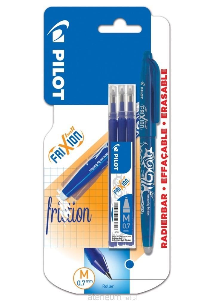 Niebieski FriXion Ball na blistrze, o rozmiarze końcówki piszącej 0.7, z 3 zapasowymi wkładami. Pisz płynnie szeroką końcówką, wymaż silikonową gumką FriXion i zacznij od nowa! Bestseller marki Pilot pozwala na czyste pisanie i usuwanie atramentu poprzez pocieranie - wszystko za pomocą tego samego pisaka. Unikalny żelowy atrament reaguje na ciepło generowane przez pocieranie i pozwala natychmiast poprawić swój błąd!