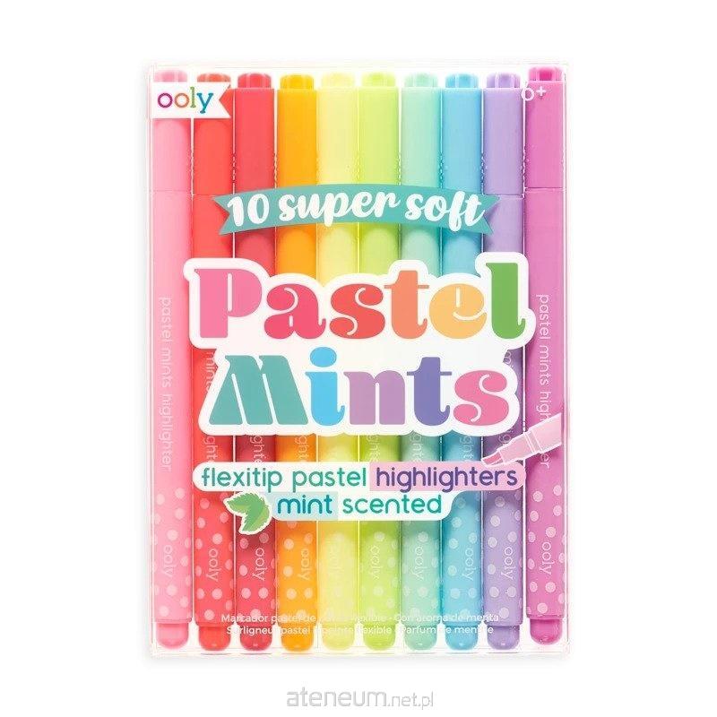 Zestaw Oooly Pastel Mints to dziesięć pastelowych zakreślaczy pachnących miętą z miękką elastyczną końcówką. Myślisz, że zakreślacz musi być gruby, neonowy i dość nieporęczny. Nic podobnego. Może wyglądać jak klasyczny mazak, mieć piękny pastelowy kolor i gładko sunącą po kartce miękką elastyczną końcówkę. Zupełnie jak zakreślacze Ooly Pastel. Dzięki nim twoje notatki, grafiki, listy zakupów i okolicznościowe karty zyskają subtelną, jasną szatę graficzną. Ścięta końcówka da możliwość kreślenia grubszych i cieńszych linii. Wszystko z uczuciem wyjątkowego komfortu, który potęguje przyjemny, świeży zapach mięty unoszących się znad stron, na których pojawi się jeden z dziesięciu kolorów Ooly Pastel Mints. Flamastry pachnące Ooly Pastel Mints: 10 zakreślaczy w pastelowych kolorach; miękkie elastyczne końcówki do płynnego zaznaczania; zapach mięty.