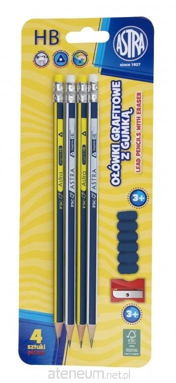 Ołówek pastel HB z miarką 4szt +gumka+ temp. ASTRA