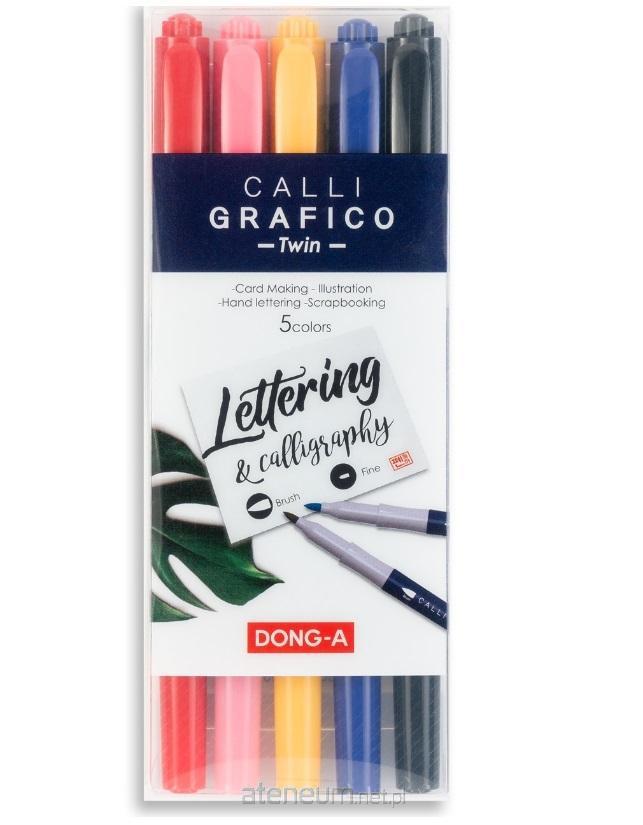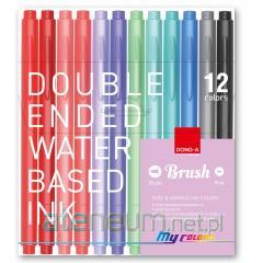 Komplet 5 sztuk pisaków w żywych, niegasnących kolorach. Atrament na bazie wody pozwala na łatwie usuwanie zabrudzeń. Pisak dwustronny: tradycyjna końcówka 2mm oraz pędzelkową która jest niezwykle precyzyjna, poprzez zmianę nacisku uzyskuje się wymaganą grubość linii.