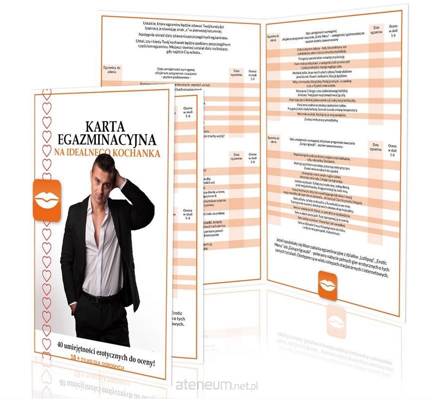 Cel gry: budowanie relacji partnerów bez tematów tabu, prosta dobra zabawa oparta o wykonywanie zadań oraz ich ocenę, zatrzymanie się i delikatne wcielenie w inną postać co pozwala na odważniejsze wykonywanie zadań Karta egzaminacyjna idealnego kochanka to erotyczna przygoda, w której partnerka wciela się w rolę egzaminatora, a partner w rolę kochanka. Kochanka pełnego pasji, który staje przed swoją egzaminatorką, wyposażoną w listę umiejętności wymaganych przez oficjalny program edukacji erotycznej. To nauczycielka decyduje, w jakiej kolejności będą wykonywane zadania egzaminacyjne i wystawia swojemu kochankowi odpowiednią ocenę. Jeżeli ocena będzie niska, partner może próbować starać się o poprawienie swojego wyniku - do czego zachęcamy. Polecamy, aby kochanek ubrał się odpowiednio na każdy egzamin, by przygoda była bardziej smakowita! Gadżet w skrócie: - karta egzaminacyjna na idealnego kochanka - 40 umiejętności erotycznych do oceny - wspaniała zabawa erotyczna dla par - duży format! Rozkładane A4! - uwaga! gra tylko dla dorosłych! - zrób egzamin swojemu partnerowi - na pewno nie pożałujesz :) Poziom pikanterii: 3/5