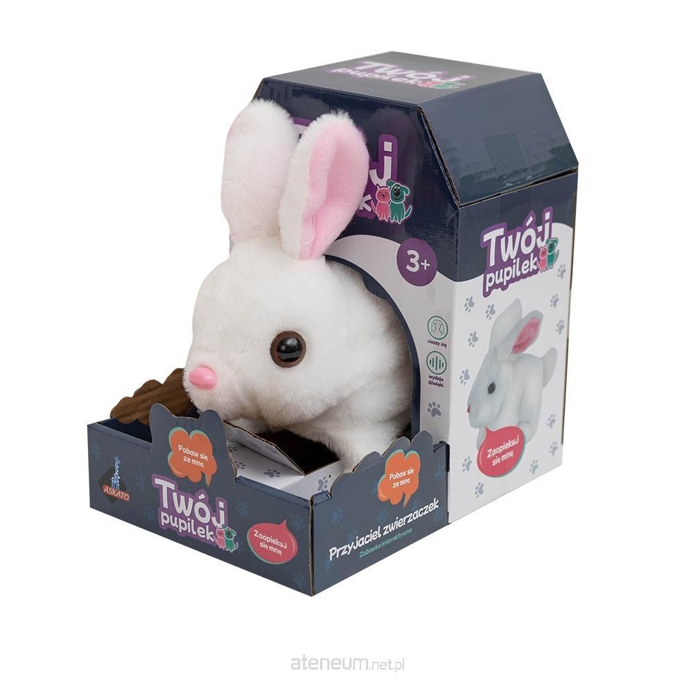 Zajączek radośnie kica, rusza pyszczkiem oraz uszami i ogonkiem, niczym prawdziwy zając.