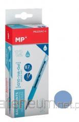 Specyfikacja: materiał - metal (aluminium) Długopis z wkładem wielkopojemny typu parker, kolor niebieski Grubość linii pisania 1mm mechanizm włączania pstrykany opakowanie rodzaj - kartonowy dpy w przeźroczystym opakowaniu opakowanie zbiorcze (szt) 12 Kolory - 3 pod nadruk NIE Wykończenia - srebrne, błyszczące Korpus powierzchnia brokatowa kolory brokat grafitowy,różowy i złotyKorpus przechodzące 2 metaliczne kolory