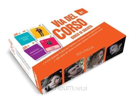 Gra planszowa Via del Corso A1 to pierwsza gra połączona z kursem językowym dla dorosłych. Łącząc zabawę z wyzwaniem poznawczym i wykorzystując wewnętrzną motywację, gra ma na celu ponowne wykorzystanie treści leksykalnych, komunikacyjnych, kulturowych i gramatycznych kursu. 6 proponowanych gier przekształca doświadczenie gry w sensowne uczenie się: uczniowie są zmotywowani, pasjonują się wyzwaniami, bohaterami i są niezależni w ocenie. Gra planszowa Via del Corso A1 jest zatem doskonałym źródłem motywacji i zaangażowania klasy. W pudełku znajdziesz 300 kart (6 talii po 50) do gry w Taboo, Indovina, Ciak!, Mix, Artisti si nasce!, Improvvisiamo; 4 karty przewodnika, instrukcje dla nauczycieli i składany uchwyt na karty. Baw się dobrze!