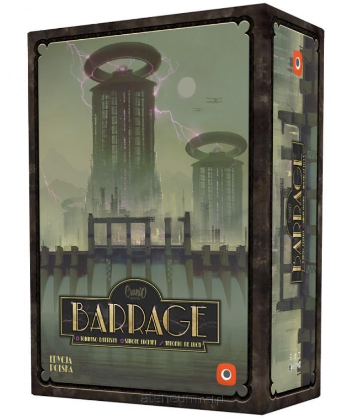 W Barrage wcielacie się w Dyrektorów Wykonawczych spółek energetycznych, a waszym zadaniem jest uzyskanie jak największej ilości energii. Będziecie zdobywać Techonologie, by stawiać Tamy i Elektrownie wodne, łączyć je Kanałami i prowadzić jak najefektywniejszą produkcję, a następnie wypełniać kontrakty. Dążycie do tego, by na różne sposoby zdobyć jak najwięcej Punktów Zwycięstwa. Barrage to po włosku Zapora gra została zaprojektowana przez włoskie studio Cranio Creations, sfinansowana na Kickstarterze i wydana po polsku przez Portal Games. Barrage już porównywany jest przez recenzentów do Brass Birmingham i Lancanshire to także duża i ciężka, podobnie wymagająca i satysfakcjonująca gra ekonomiczna, oparta o podobną wizualnie mapę, ale mechanika jest zupełnie inna.