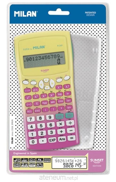 | Kalkulator naukowy z kolekcji SUNSET z 2 liniowym wyświetlaczem LCD (10 + 2 cyfry). Równoczesne wyświetlanie wyrażenia matematycznego i wyniku. Posiada 240 zintegrowanych funkcji. Żółto-różowy kalkulator z wytrzymałym przezroczystym pokryciem ochronnym. Zasilanie: 2 x baterie AAA w zestawie. Zawiera instrukcje. Kalkulatory MILAN spełniają wymagania dyrektywy RoHS o ograniczeniach stosowania niektórych substancji niebezpiecznych w urządzenia elektrycznych i elektronicznych. Oryginalny projekt stworzony przez własny dział badawczo-rozwojowy MILAN. Pakowany na blistrze. Rozmiar kalkulatora: 16,7 x 8,4 x 1,9 cm. Najważniejsze dostępne funkcje: obliczenia statystyczne; rachunek 6 różnych radzajów regresji wraz z ich współczynnikami A,B; wzajemna transformacja współrzędnych prostokątnych i biegunowych; bezpośrednie operacje na ułamkach, także sześćdziesiątkowych; funkcje trygonometryczne i odwrotne do trygonometrycznych; funkcje paraboliczne i hiperboliczne oraz im odwrotne; obliczenia z zastosowaniem jednostek kątowych w stopniach, radianach, gradach; konwersja między systemem dziesiętnym i sześćdziesiętnym; generowanie wartości losowych; obliczanie kombinacji i permutacji; notacja inżynierska; kursor do zmiany MENU; statystyka dwuwymiarowa z obliczaniem wartości średniej, szacowanej i sum; funkcje SCI/FIX/ENG. |