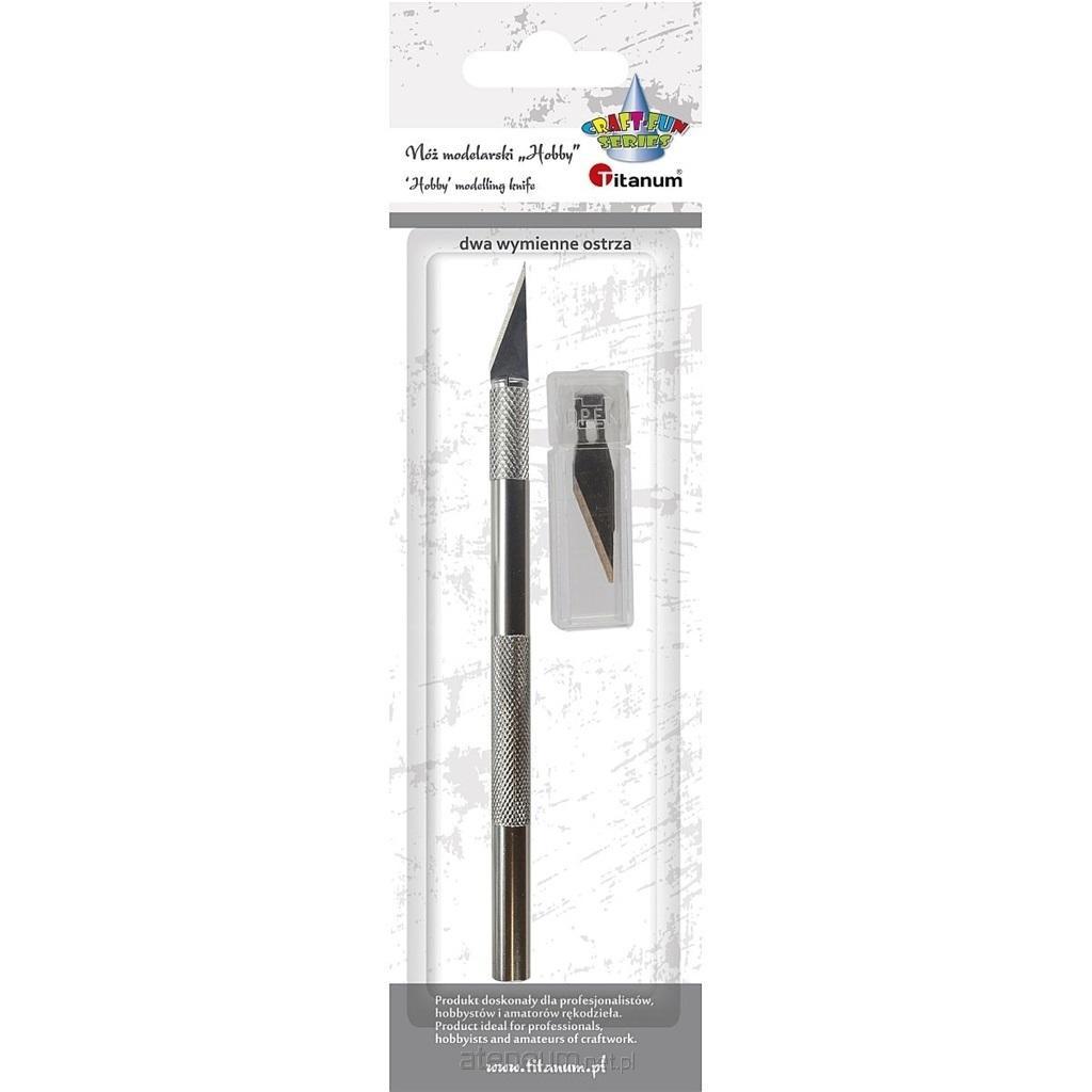 - nóż modelarski typu skalpel - rękojeść i imak ostrza wykonane z metalu - w zestawie pojemnik z 2 zapasowymi ostrzami