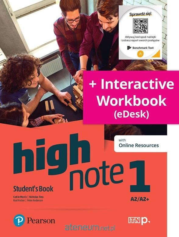 High Note 1. Student's Book z kodem dostępu to podręcznik, który ma: elastyczny podział materiału lekcyjnego, sekcja referencyjna z wyjaśnieniami gramatyki w języku polskim, dodatkowe zadania gramatyczne oraz na środki językowe na końcu książki, listy słów w formie audiokursu, lekcje kulturowe Culture Spot i Literature Spot. Kod dołączony do podręcznika daje uczniowi dostęp do interaktywnej wersji podręcznika i zeszytu ćwiczeń z zadaniami online na platformie edesk.pearson.pl. Platforma pozwala nauczycielowi monitorować zaangażowanie uczniów w wirtualnej klasie oraz zapewnia ciekawe narzędzia motywujące młodzież do pracy zdalnej. Kod dostępu do Interactive eBook + Interactive Workbook High Note 1. Student's Book Jednorazowy kod aktywuje dostęp uczniowski do interaktywnego podręcznika i zeszytu ćwiczeń z dodatkowymi zadaniami Online Practice na platformie edesk.pearson.pl. Ważny jest przez 24 miesiące od daty aktywacji. Korzystanie z platformy eDesk na innym urządzeniu (niż to, na którym dokonano aktywacji kodu) jest możliwe. W tym celu wystarczy zalogować się swoimi danymi na stronie edesk.pearson.pl. Kod dostępu do High Note 1. Student's Book Interactive eBook + Interactive Workbook zapewnia uczniowi: kompletną wersję podręcznika z interaktywnymi zadaniami do wykonania w trybie online, automatyczne sprawdzanie zadań zamkniętych, zintegrowane nagrania audio i wideo, raporty podsumowujące wykonanie zadań, sety leksykalne, czyli zadania egzaminacyjne do matury 2023, zadania na mediację językową przygotowujące do matury 2023, korzystanie z interaktywnego zeszytu ćwiczeń, Grammar Checkpoints, czyli dodatkowe interaktywne ćwiczenia utrwalające zagadnienia gramatyczne z rozdziału, Vocabulary Checkpoints, czyli powtórkę słownictwa w wygodnej interaktywnej formie, Use of English Checkpoints, czyli utrwalenie znajomości środków językowych, Reading Checkpoints,czyli dodatkowe teksty i towarzyszące im zadania interaktywne, które pozwalają przećwiczyć poszczególne typy zadań, ListeningCheckpoints, czyli dodatkowe nagrania i towarzyszące im zadania interaktywne. Test Benchmark Aktualna edycja podręcznika została wzbogacona o indywidualny kod dostępu do przygotowanego przez wydawnictwo Pearson testu Benchmark. Benchmark to test online, który umożliwia zarówno uczniowi, jak i nauczycielowi szybką, rzetelną i kompleksową ocenę umiejętności językowych w zakresie mówienia, pisania, czytania oraz rozumienia ze słuchu w języku angielskim. Na przedniej okładce podręcznika została umieszczona naklejka z informacjami związanymi z procesem aktywacji kodu, samym testem oraz sposobem jego przeprowadzenia. Do podręcznika High Note 1 został dołączony kod dostępu do testu Benchmark na poziomie A.
