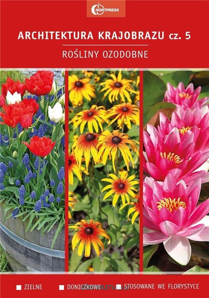 Podręcznik Architektura krajobrazu cz. 5 jest przeznaczony dla uczniów szkół kształcących w zawodzie technik architektury krajobrazu'. Obejmuje kwalifikacje: R.21. Projektowanie, urządzanie i pielęgnacja roślinnych obiektów architektury krajobrazu. R.22. Organizacja prac związanych z budową oraz konserwacją obiektów małej architektury. Umiejętność właściwego projektowania obiektów zieleni wymaga dobrej znajomości morfologii i wymagań roślin, których w naszej strefie klimatycznej można uprawiać niezwykle dużo. Różnią się one od siebie wyglądem, szybkością wzrostu, wymaganiami siedliskowymi oraz odpornością na różne czynniki, m.in. odpornością na mróz lub suszę czy zanieczyszczenia powietrza. W części 5 podręcznika przedstawiono ozdobne rośliny zielne, doniczkowe, stosowane we florystyce, które wykorzystuje się w architekturze krajobrazu. Z podręcznika mogą również korzystać studenci wydziałów ogrodniczego i architektury krajobrazu oraz wszyscy zajmujący się zawodowo projektowaniem terenów zieleni.