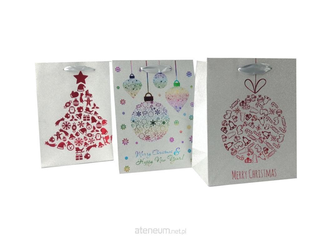 Torebka świąteczna, pionowa o wymiarach 18x23x10 cm. Dostępna w 3 wzorach z brokatem. Kolor sznureczka idealnie komponuje się z kolorystyką torebki. Posiada wzmacniany spód.