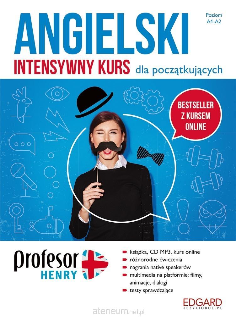 Nowa edycja bestsellera! 500 tysięcy zadowolonych użytkowników! Profesor Henry. Angielski. Intensywny kurs dla początkujących to propozycja do skutecznej nauki języka angielskiego na poziomie podstawowym (A1-A2). Nowe wydanie bestsellerowej pozycji, z której uczyło się już pół miliona osób! To kompleksowy pakiet do samodzielnej nauki języka angielskiego od podstaw, który gwarantuje opanowanie wszystkich umiejętności niezbędnych do swobodnego i skutecznego porozumiewania się. Innowacyjna forma nauki z nowocześnie wydanym kolorowym podręcznikiem, nagraniami native speakerów i kursem online gwarantuje zauważalne postępy w przyswajaniu języka angielskiego. Weź udział w treningu wszystkich umiejętności językowych, dzięki któremu poćwiczysz mówienie, rozumienie, pisanie, czytanie oraz gramatykę i słownictwo. W skład pakietu wchodzą: książka, płyta CD MP3 oraz dostęp do kursu online. W książce znajduje się aż 14 podzielonych tematycznie rozdziałów z różnorodnymi ćwiczeniami i kluczem odpowiedzi oraz 5 testów cząstkowych sprawdzających stopień opanowania materiału. Na końcu podręcznika zamieszczono praktyczny słowniczek oraz tabelę z czasownikami nieregularnymi. Nowoczesna, kolorowa szata graficzna ułatwi przyswajanie informacji. Na płycie CD MP3 znajdują się nagrania profesjonalnych lektorów, wyłącznie native speakerów języka angielskiego oraz tłumaczenia dialogów, które pozwolą osłuchać się z językiem i poznać prawidłową wymowę. Materiał można powtarzać w dowolnym momencie i miejscu w drodze do pracy, szkoły czy na siłowni. Dostęp do kursu online pozwoli uczyć się dzięki filmom i zabawnym animacjom z przykładami użycia słówek i zdań nagranych przez native speakerów oraz ilustrowanych zdjęciami. Atrakcją są również interaktywne ćwiczenia i gry. W szybkiej i efektywnej nauce pomoże system motywujący: ustawienie celu dnia, raport tygodniowy i rywalizacja ze znajomymi. Na zakończenie kursu czeka imienny certyfikat, który można załączyć do CV. Angielski. Intensywny kurs to: ponad 800 różnorodnych ćwiczeń 5 testów sprawdzających najbardziej aktualne metody nauki języka obcego multimedia na platformie: filmy, animacje, interaktywne dialogi fotosłowniczki nagrania wyłącznie native speakerów gotowe wzorce komunikacyjne do wykorzystania w codziennych sytuacjach przystępnie objaśniona gramatyka z przykładami i ćwiczeniami * Pozycja jest nowym, uzupełnionym wydaniem bestsellerowego pakietu Profesor Henry Intensywny kurs z dostępem do kursu online na platformie Multikurs.