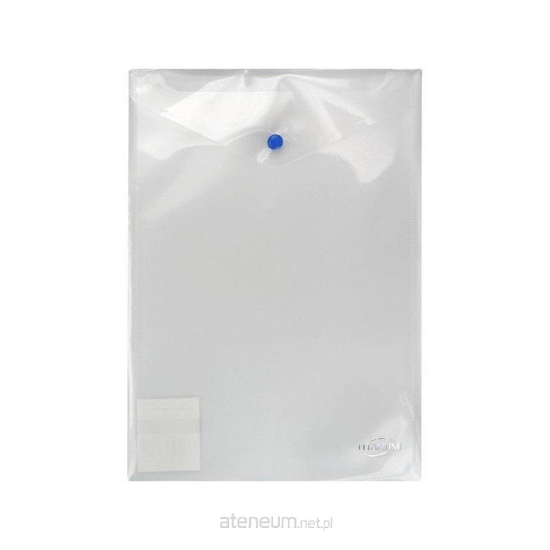 Teczka z polipropylenowej folii o transparentnej, lekko matowej, prążkowanej fakturze, pionowa, zapinana na zatrzask, format A4.