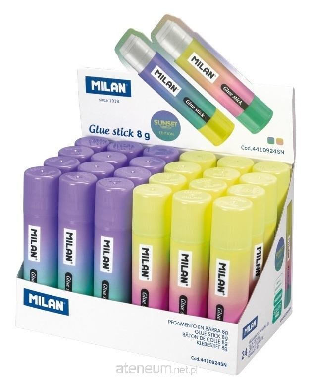 Klej w sztyfcie 8 g w kolorze białym. Niewidoczny po wyschnięciu. Dostępne 2 kolory obudowy nawiązujące do kolekcji SUNSET: żółty i fioletowy. Uniwersalny: łatwo klei papier, karton, tkaninę, filc, korek, skórę i piankę. Szybkoschnący. Bez rozpuszczalnika. Idealny do użytku w szkolnego. Rozmiar kleju: 8,3 x 1,8 cm.