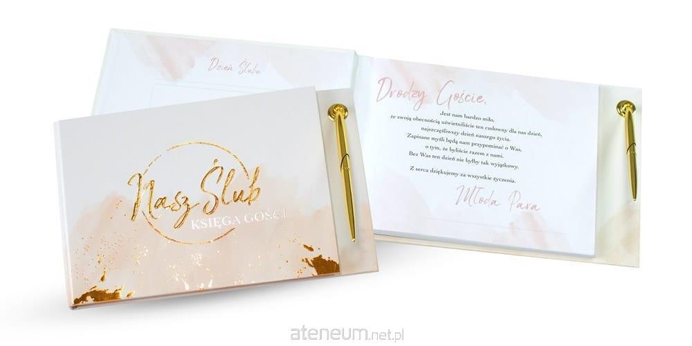 Księga gości Happy Book HBP-001 (prostokątna). Dzień ślubu pozostaje na zawsze w pamięci Młodej Pary. Ten dzień pełen szczególnych emocji wymaga wyjątkowej oprawy. Aby upamiętnić ten jedyny w swoim rodzaju moment życia Kukartka stworzyła piękne Księgi gości. Happy Book to album, który pozwoli zachować wspomnienia z tego najważniejszego dnia. Wpisy gości, zapiski, wspomnienia i złote myśli przetrwają przez całe życie. Dołożyliśmy wszelkich starań, aby nasz produkt był trwały, elegancki i najwyższej jakości (jak to zwykle w Kukartce). 40 białych kart na wpisy poprzedzonych jest stroną tytułową oraz miejscem na zdjęcie. Ekskluzywna okładka zdobiona jest złotą lub srebrną folią (hot Stamp). Dla ułatwienia (i lepszego efektu) dołączamy elegancki długopis doskonale uzupełniający całość. Wymiar 265mm x 170mm. Całość jest zapakowana w eleganckie i trwałe pudełeczko. To produkt z najwyższej półki godny tego wyjątkowego dnia.
