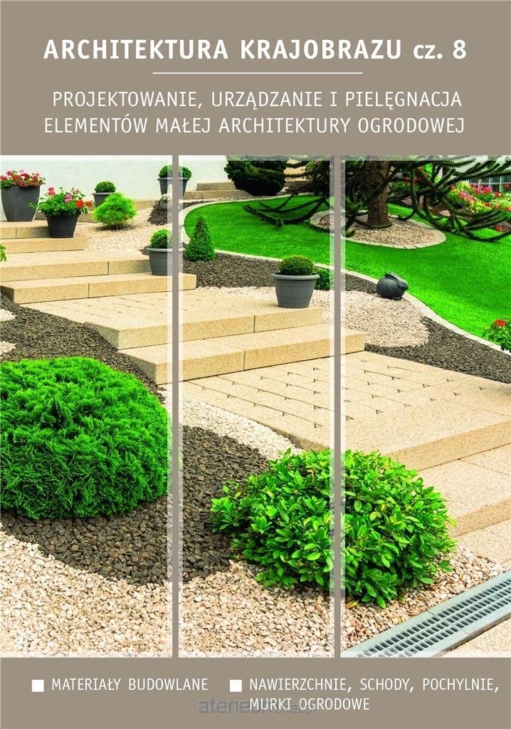 Architektura krajobrazu to, oprócz ukształtowania powierzchni oraz nasadzeń roślinnych, także komunikacja i małe elementy uzupełniające. Wyposażenie danego obiektu w tego rodzaju elementy zależy od jego funkcji i przeznaczenia. W procesie projektowania niezbędna jest również znajomość materiałów budowlanych, podstawowych zasad budowy oraz konstrukcji elementów małej architektury. Wykonanie projektu musi zapewnić funkcjonalność, trwałość i bezpieczeństwo dla przyszłych użytkowników. Część 8. podręcznika przedstawia zasady kompozycji i techniki wykonania takich elementów jak: nawierzchnie (drogi i place), pochylnie, schody i murki ogrodowe.