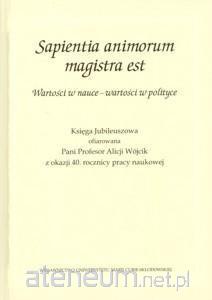Książka zatytułowana "Sapientia animorum magistra est", czyli mądrość jest mistrzynią ducha, zawiera zestaw artykułów naukowych, studiów i szkiców dotyczących wartości w nauce oraz wartości w polityce. Tematyka oscyluje wokół spraw bliskich Jubilatce, a związanych z naczelnymi wartościami obecnymi w publicznym i prywatnym życiu jednostki ludzkiej. Wśród norm i zasad znalazły się kwestie: zachowań i postaw ludzi nauki, formułowania ideałów wychowawczych, osobowości bohaterów narodowych jako wzorców edukacji obywatelskiej. W katalogu najwyższych wartości politycznych wyróżniono: kulturę, lud, naród, niepodległość, państwo, patriotyzm, religię, rodzinę, samorządność, sprawiedliwość. Dopełniają go wartości o wymiarze funkcjonalnym, takie jak osobowość polityka, symbol polityczny, wizerunek polityka.