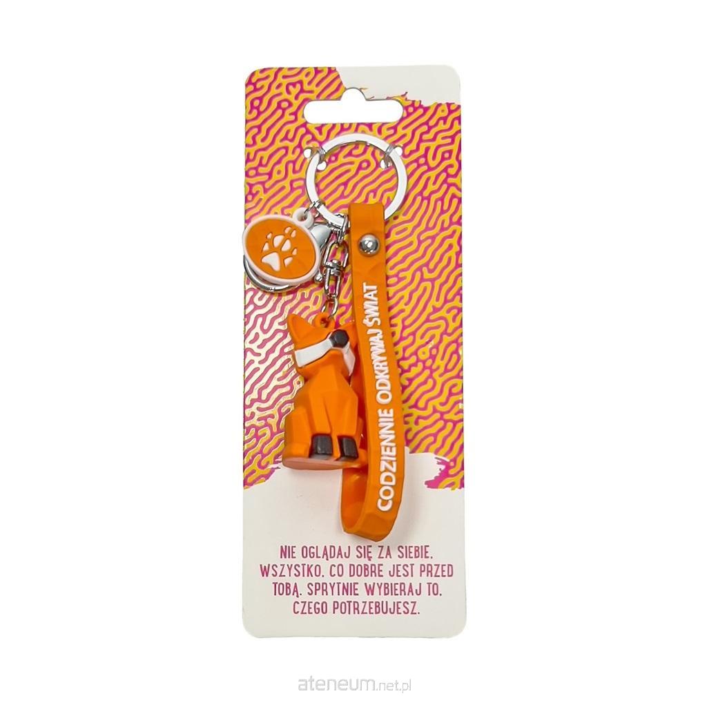 Brelok geometryczny z metalowym kółkiem i karabińczykiem. Dodatkowo: silikonowy pasek z tekstem w języku polskim, oraz charms z odciskiem łapy.