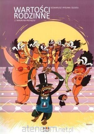 Pan J. po ucieczce z domu ukrywa się gdzieś na mieście. Edgar, głowa rodziny Królów, próbując go znaleźć okazuje się jednoosobową bojówką walczącą ze złem. Tymczasem jego żona urządza wielkie przyjęcie dla sąsiadów, córka romansuje na boku z dresiarzem a tajemniczy wojskowy projekt "Sobieski", kierowany przez generała Grota, nabiera rozpędu. Choć niekoniecznie pędzi we właściwym kierunku... Te i inne atrakcje (ukraińska pani od sprzątania, Masza, na rozkładówce!) znajdą się w zeszycie "Małpa na przyjęciu", drugiej odsłonie "Wartości rodzinnych". Ta nowa seria komiksowa autorstwa Michała "śledzia" śledzińskiego, twórcy m.in. słynnego "Osiedla swoboda" czy "Na szybko spisane", to polska odpowiedź na kultowe amerykańskie seriale - "Głowa rodziny" czy "Simpsonowie".