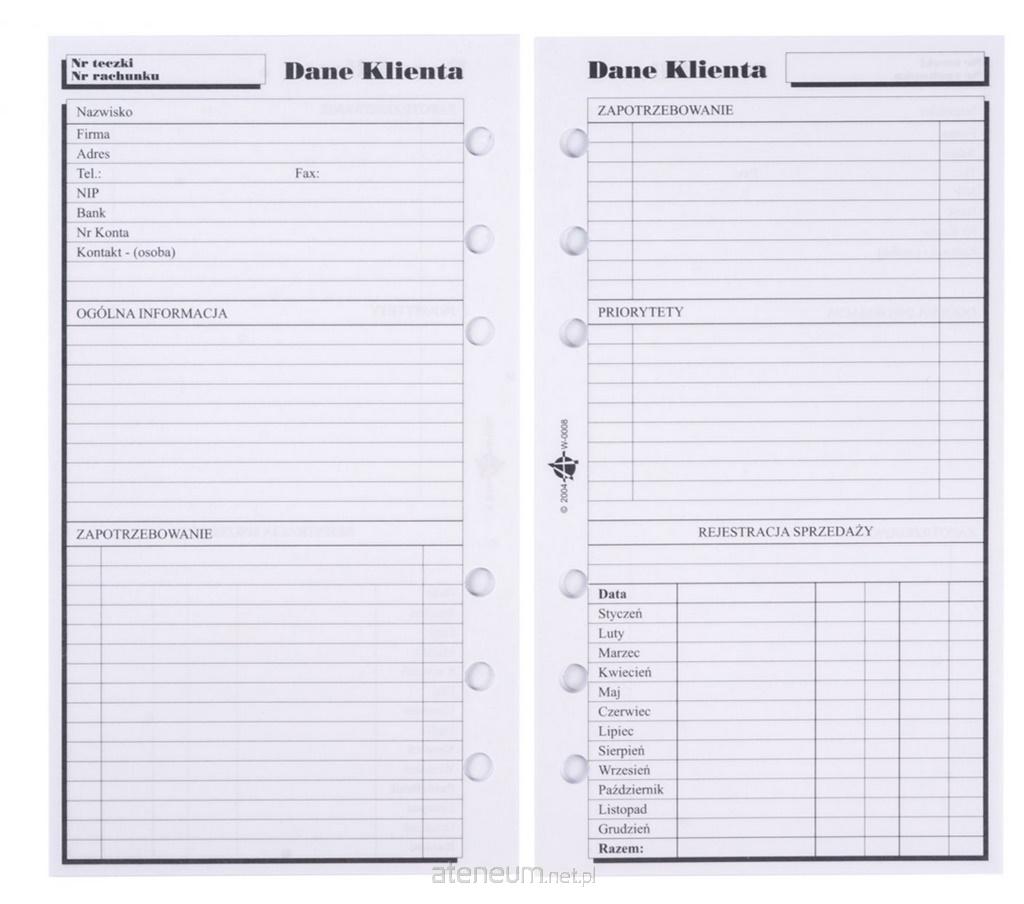 Wkład do organizera A5 Dane klienta ANTRA