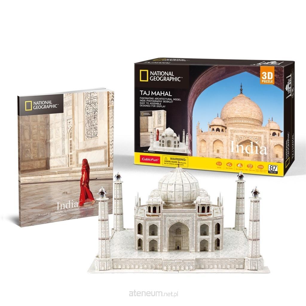 Puzzle Taj Mahal na licencji National Geographic. W opakowaniu znajduje się 95puzzli, wykonanych ze specjalnego materiału przypominającego piankę. Puzzle są ponumerowane, ponacinane i umieszczone na arkuszach. Wystarczy bez użycia siły wycisnąć element z arkusza i zmontować go zgodnie z dołączoną instrukcją, bez użycia kleju ani specjalnych narzędzi. Wielkość budowli po złożeniu 50,5 x 31 x 45,5 cm. Poza puzzlami w opakowaniu znajduje się praktyczny przewodnik z ciekawostkami zawierający 28 stron.