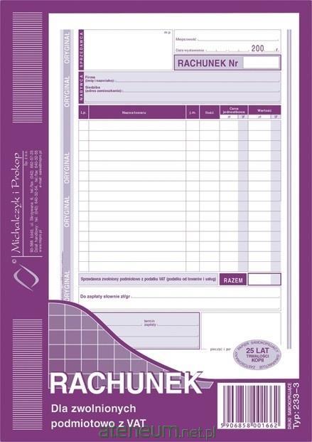 Rachunek dla zwolnionych podmiotowo z VAT 230-4