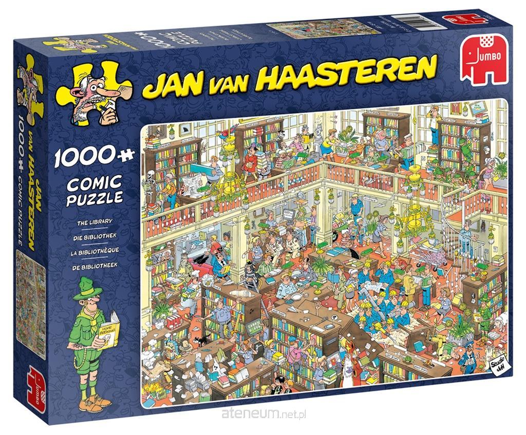Od dziesięcioleci, Jan van Haasteren tworzy specjalnie dla marki Jumbo, niezwykle kolorowe humorystyczne ilustracje z dbałością o najdrobniejszy nawet szczegół. Nic więc dziwnego, że puzzle Jana van Haasterena stały się niekwestionowanym numerem 1 wśród komiksowych układanek. Większość fanów jego twórczości natychmiast zacznie szukać znaku rozpoznawczego Jana ? płetwy rekina, którą znaleźć można we wszystkich stworzonych przez niego puzzlach! Możesz jednak podjąć wyzwanie i spróbować poszukać na jego rysunkach również innych motywów, które przewijają się w ogromnej ilości prac van Haasterena ? Świętego Mikołaja, należących nie wiadomo do kogo dłoni, wystających a to zza ściany, a to spod wody, protez, czy autoportretu Jana van Haasterena. Dasz radę odnaleźć je wszystkie? Przez lata współpracy Jumbo z Janem van Haasterenem powstała pokaźna kolekcja puzzli, począwszy od układanek 150-elementowych, a kończąc na tych składających się z 5000 elementów. Każdego roku kolekcja ta powiększa się o kolejne wzory.