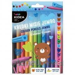 Grube kredki Jumbo ołówkowe ASTRA KIDS dla dzieci. 12 kolorowych kredek o okrągłym przekroju w opakowaniu z pikselami w stylu znanej gry komputerowej. Kredki ASTRA są miękkie w użyciu, zapewniają intensywne kolory i łatwo się temperują. Gruby kształt ułatwia trzymanie w dziecięcej dłoni. Temperówka w zestawie gratis.