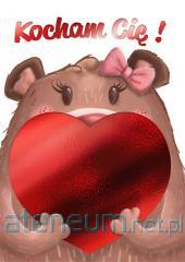 Drewniana kartka Walentynkowa - Kocham Cię...