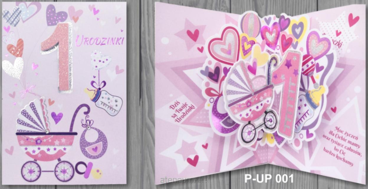 Karnet B6 brokat z kopertą Urodziny 1 dziewczynka