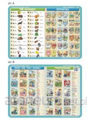 Podkład na biurko (biuwar) dla ucznia w formacie A3 Irregular verbs. Na podkładzie znajduje się tabelka z najważniejszymi czasownikami nieregularnymi języka angielskiego: forma czasu teraźniejszego, formy przeszłe oraz tłumaczenie, miejsce na notatki i linijka.