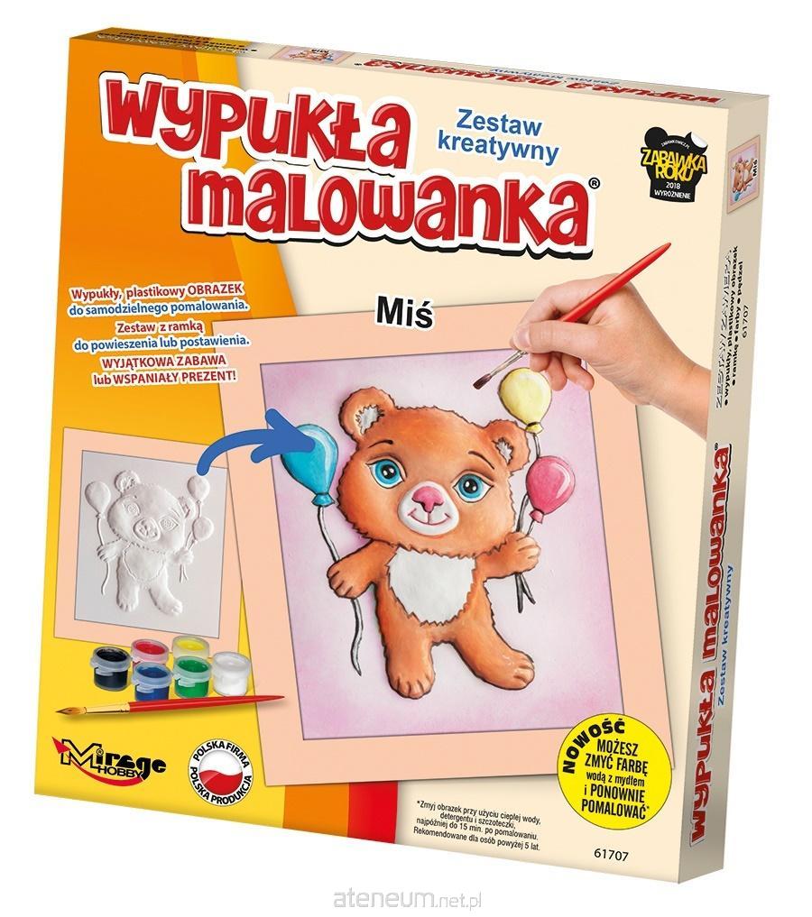 Wypukła Malowanka od Mirage Hobby to Zestaw Kreatywny do malowania dla osób powyżej 5. roku życia. Zestaw zawiera wypukły, plastikowy, kształtny obrazek 3D, farbki akrylowe, pędzelek oraz ramkę z kartonu do postawienia lub powieszenia. Zmyj obrazek przy użyciu ciepłej wody, mydła i szczoteczki, najpóźniej do 15 min. po pomalowaniu. Obrazek ma odpowiedni do wzoru wypukły kształt 3D, który jest dobrze odczuwalny w dotyku. Produkt jest wymyślony i wyprodukowany w Polsce! Wszelkie prawa zastrzeżone. Każda Wypukła Malowanka to konkretny wzór z danej serii. Kolekcja jest podzielona na różne serie np. Koty, Psy, Konie, Futrzaki, Dinozaury, Jednorożce, Kwiaty, Sport, Bajki, Zoo, Las, Taniec i inne. Seria Wypukła Malowanka Zestaw Kreatywny została nagrodzona Wyróżnieniem Zabawka Roku 2018.