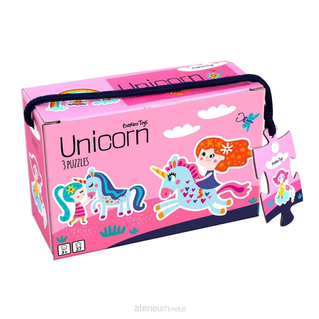 Moje pierwsze puzzle, 3 układanki, 6, 9, 12 el., Jednorożec, Little Bright Ones Piękne puzzle, które pozwolą rozwijać dziecięcą zręczność, koordynację i wyobraźnię. Zestaw składa się z 3 układanek o różnym stopniu trudności - 6, 9 i 12 elementowe. Puzzle zostały zapakowane w piękne pudełko z zawieszką, co sprawia że doskonale nadają się na prezent. Dzięki układankom dzieci mogą trenować koncentrację, cierpliwość oraz wytrwałość. Puzzle wspomagają umiejętności motoryczne, rozpoznawanie kolorów i kształtów, pamięć, rozwiązywanie problemów, a przy tym są doskonałym pomysłem na przyjemne spędzanie wolnego czasu. Różna liczba elementów oraz ich wielkość pozwalają stawiać przed dziećmi coraz trudniejsze wyzwania. Szczegółowe informacje o produkcie: Zestaw zawiera 27 puzzli: 3 układanki o wielkości: 6, 9 i 12 elementów. Każda z układanek zawiera piękne wielobarwne ilustracje, przyciągające uwagę dzieci. Zapakowane w prezentowe pudełko z zawieszką w kształcie puzzla. Wymiary opakowania: 18 cm x 7 cm x 12 cm. Kategoria wiekowa: 3+. Produkty Barbo Toys są projektowane w Danii, ze szczególną dbałością o zrównoważony rozwój i wysokiej jakości materiały. Zabawki są wytwarzane zgodnie z filozofią "nauka przez zabawę" i aktywnie wspierają i stymulują zarówno wyobraźnię jak i edukację dziecka, przy tym charakteryzują się doskonałym skandynawskim wzornictwem.