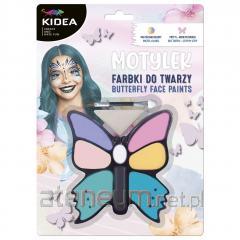 Zestaw 4 farbek do twarzy w brokatowych kolorach fioletowym, różowym, niebieskim i zielonym. Są bardzo wydajne i wygodne w użyciu, dzięki czemu farbki wystarczą na pomalowanie wielu różnych stylizacji. Głębokie odcienie połączone z perłowym efektem i brokat pozwolą stworzyć makijaż jedyny w swoim rodzaju! Twoja stylizacja będzie mienić się i wyjątkowo błyszczeć! Zestaw zawiera aplikator, który doskonale sprawdzi się w pokryciu większych powierzchni oraz rysowaniu dokładnych kontur oraz gąbeczkę idealna do blendowania. Farbki są bezpieczne w użytkowaniu, co potwierdzają przeprowadzone testy dermatologiczne. Z tyłu opakowania instrukcja jak krok po kroku stworzyć wybraną stylizację. Stwórz spektakularny makijaż razem z KIDEA, od którego wszyscy nie będą mogli oderwać wzroku!