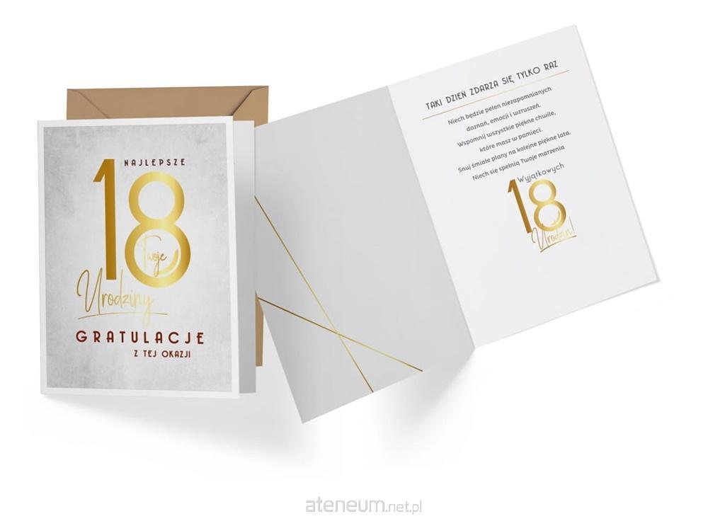 Karnet w powiększonym tzw. Angielskim formacie 140x190 mm. Wykonany z niezwykłą dbałością o szczegóły, zdobiony folią holograficzną i w całości pokryty folią matową dla podkreślenia efektu prostoty i elegancji. Wewnątrz znajduje się tekst życzeń, a całość uzupełnia dedykowana koperta.
