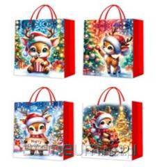 Torebka świąteczna, pionowa o wymiarach 33x45,7x10,2 cm. Dostępna w 4 wzorach. Metalizowane elementy. Kolor sznureczka idealnie komponuje się z kolorystyką torebki. Posiada wzmacniany spód.