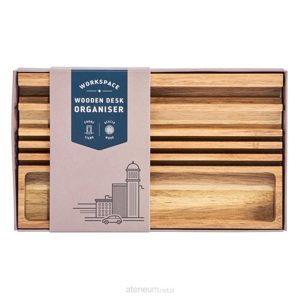 Zawiera praktyczne przegródki na drobiazgi, miejsce na długopisy, ołówki oraz wizytówki i stojak na telefon.