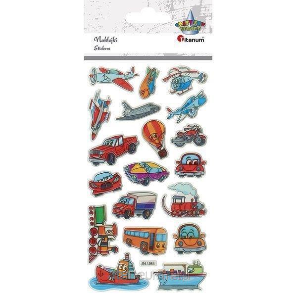 Naklejki wypukłe pojazdy jeżdżące, latające i pływające - 19 sztuk.