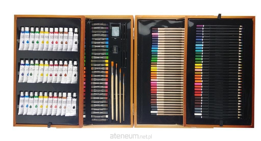 ZESTAW ARTYSTYCZNY 168 elementów, zapakowany w drewnianą teczkę.
