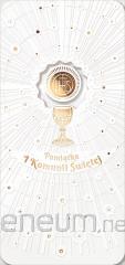 Kartka okolicznościowa z okazji Pierwszej Komunii Świętej zaprojektowana przez Aleksandrę Makowską.