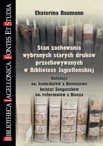 Celem głównym pracy było przeprowadzenie oceny stanu zachowania z autopsji starych druków z trzech historycznych kolekcji przechowywanych w BJ: oo. kamedułów z Bieniszewa i oo. reformatów z Biecza (kolekcje depozytowe), a także rodowej kolekcji starych druków należącej poprzednio do rodziny książąt Sanguszków obecnie znajdującej się we własności BJ. W pracy zostały przedstawione wyniki badań, którymi objęto łącznie 4140 woluminów starych druków. Wynikiem i syntezą przeprowadzonych prac jest opis modelu bibliotekoznawczego oceny stanu zachowania starych druków, z wykorzystaniem modeli rosyjskich oraz osiągnięć specjalistów z Polski. Model może być przeznaczony dla bibliotekarzy i opiekunów kolekcji (przede wszystkim kościelnych i prywatnych) i znajduje się w obszarze naukowym bibliologii [...]