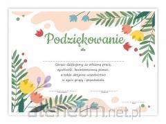 Dyplom w formacie A4 (30cm x 21cm), wydrukowany na grubym papierze 300g.