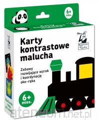 Karty kontrastowe malucha (0+ mies.) to pierwszy z serii kontrastowej zestaw zabaw stymulujących wzrok niemowląt już od pierwszych dni życia. Zawiera 12 dużych, dwustronnych czarno-białych kart oraz poradnik dla opiekunów ze wskazówkami terapeutki widzenia i optometrystki, jak rozwija się wzrok w pierwszym roku życia dziecka, oraz pomysłami na kreatywne zabawy z kartami, które można wykorzystywać na wiele sposobów, tak aby uczyć poznawania kształtów i kolorów, a jednocześnie budować niepowtarzalną więź z niemowlakiem.
