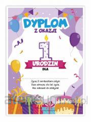 Dyplom w formacie A5 (~ 21cm x 14,8cm), wydrukowany na grubym papierze 300g.