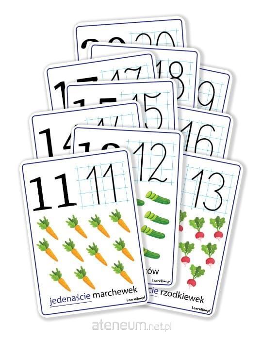 Zestaw zawiera 10 kart w formacie A4(297mm x 210mm), karty są drukowane na grubym papierze 300g, dwustronnie zafoliowane oraz mają zaokrąglone rogi dla komfortu i bezpieczeństwa użytkowania.Zestaw zawiera następujące cyfry: 11, 12, 13, 14, 15, 16, 17, 18, 19, 20.
