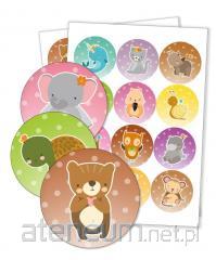 Naklejki o średnicy 40mm, wydrukowane na papierze błyszczącym.