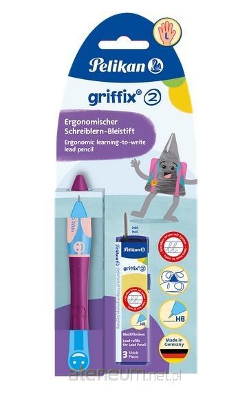 Ołówek automatyczny Pelikan Griffix to etap 2 w 4-stopniowym systemie nauki pisania opracowanym przez markę Pelikan. System ten wspiera dziecko na każdym etapie rozwoju umiejętności pisania a przejście z rysowania kredkami do pierwszych liter właśnie dzięki temu ołówkowi jest wyjątkowo naturalne i komfortowe. Ergonomiczna, trójkątna strefa chwytu przypomina tę znaną z kredek Griffix i pomaga dziecku utrwalić prawidłową pozycję dłoni. Co ważne, poprawny chwyt jest sygnalizowany w prosty sposób jeśli na korpusie widoczna jest uśmiechnięta buźka, to znaczy, że dziecko trzyma ołówek właściwie. Ołówek wyposażony jest w dociskowy mechanizm wysuwania rysika. Rysik ma grubość 2 mm i twardość HB rekomendowaną do nauki pisania. Produkt dostępny jest w wersji dla dzieci prawo- i leworęcznych, dzięki czemu każde dziecko może uczyć się w sposób dla siebie naturalny i wygodny.