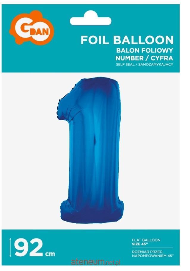 Balon foliowy Cyfra 1, niebieska, 92 cm Wymiar balonów po napompowaniu: ok. 92 cm. Kolor: niebieski. Balony są przeznaczone do napełnienia helem. Napełnienie ich powietrzem spowoduje, że balony nie będą się unosić. Opakowanie zawiera 1 szt. Producent: GoDan S.A. Balony nie są napełnione helem. Przepiękny, duży niebieski balon foliowy na hel w kształcie cyfry 1 (jeden). Idealny na imprezę z okazji 1 urodzin, roczek, pierwszej pracy, awansu, rocznicy oraz jako dodatek do innych balonów i kompozycji z okazji urodzin lub rocznic. Większe liczby można tworzyć dodając inne balony dostępne w naszej ofercie. Balon jest wykonany z mocnej, wytrzymałej folii z możliwością dopompowywania w przyszłości (np. za pomocą słomki aby uzupełnić ubytki helu). Pięknie się prezentuje i długo utrzymuje gaz (hel / powietrze). Posiada także specjalne wypustki umożliwiające przywiązanie dodatkowych - przytrzymujących lub stabilizujących wstążeczek lub ciężarków.