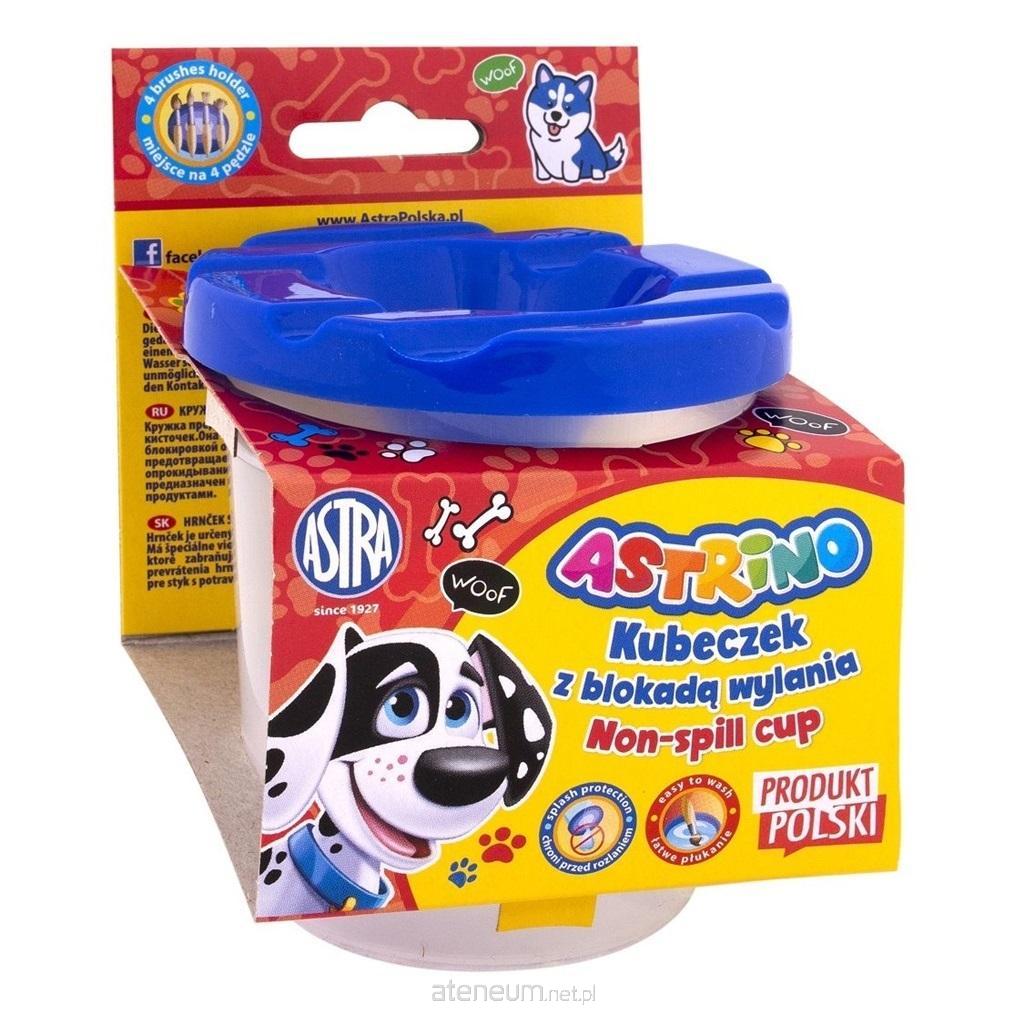 Przydatny produkt każdego ucznia Pojemnik na wodę Astrino do płukania pędzli. Ma specjalną pokrywką z blokadą wylania wody i miejscem na odłożenie aż 4 pędzelków.